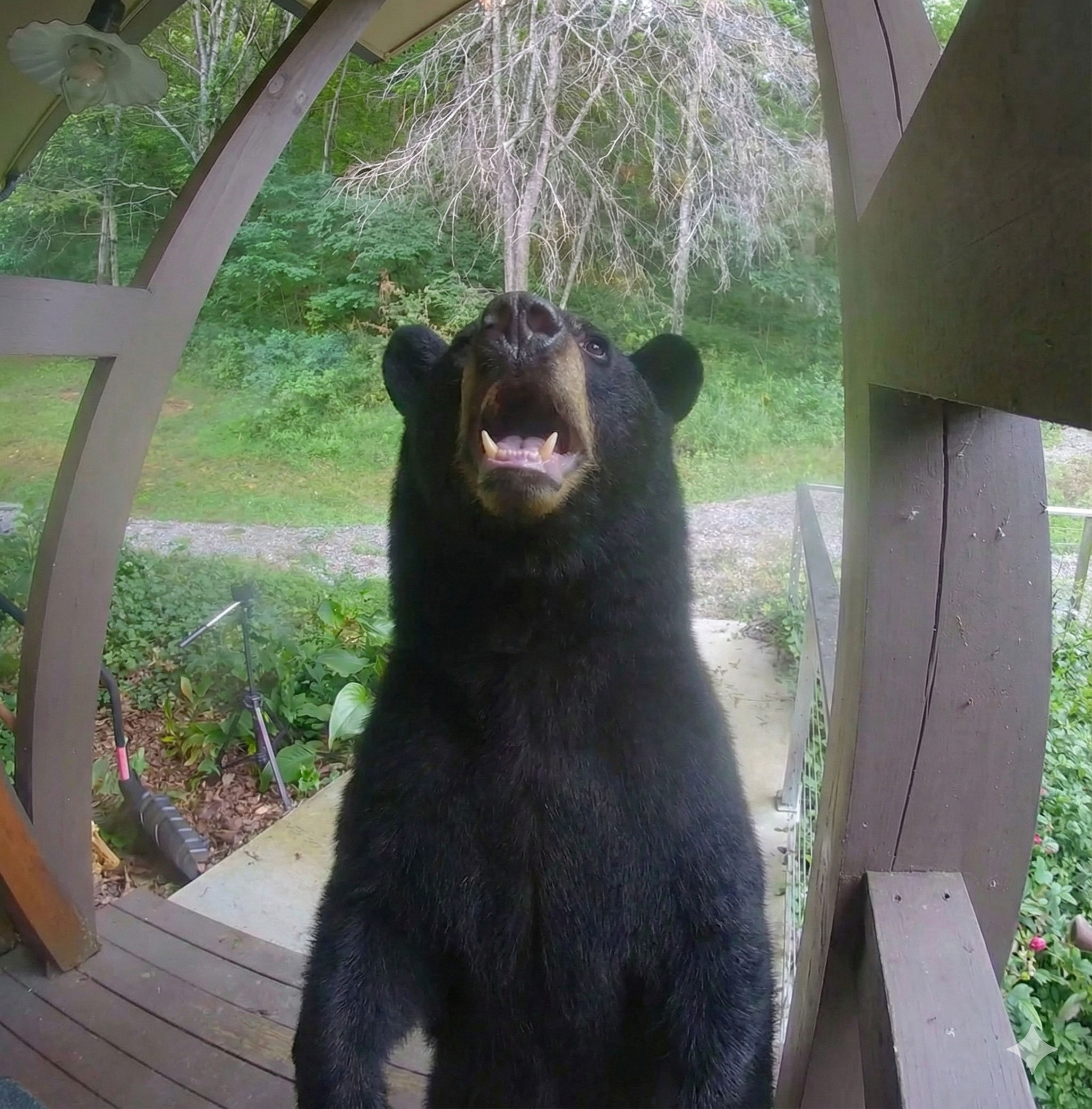 The bear did come to the front door, that is true. However, the image that the doorbell cam captured was blurry. The blur was caused by motion. I asked the AI to focus the image. Perhaps, it took a little too much creative freedom?